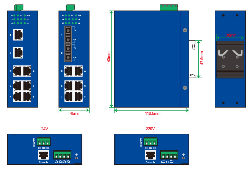 | 安裝方式 | 默認導軌安裝,可選壁掛安裝 |