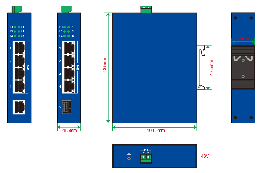 | RJ45端口數(shù) | 最多5個百兆電口 |