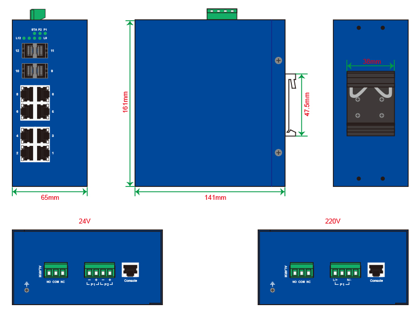 | MIB | RFC 1215 Trap, RFC1213 MIB II,RFC 1157 SNMP MIB, RFC 1493 Bridge MIB, RFC 2674 VLAN MIB, RFC 1643,RFC 1757, RSTP MIB, Private MIB, LLDP MIB |